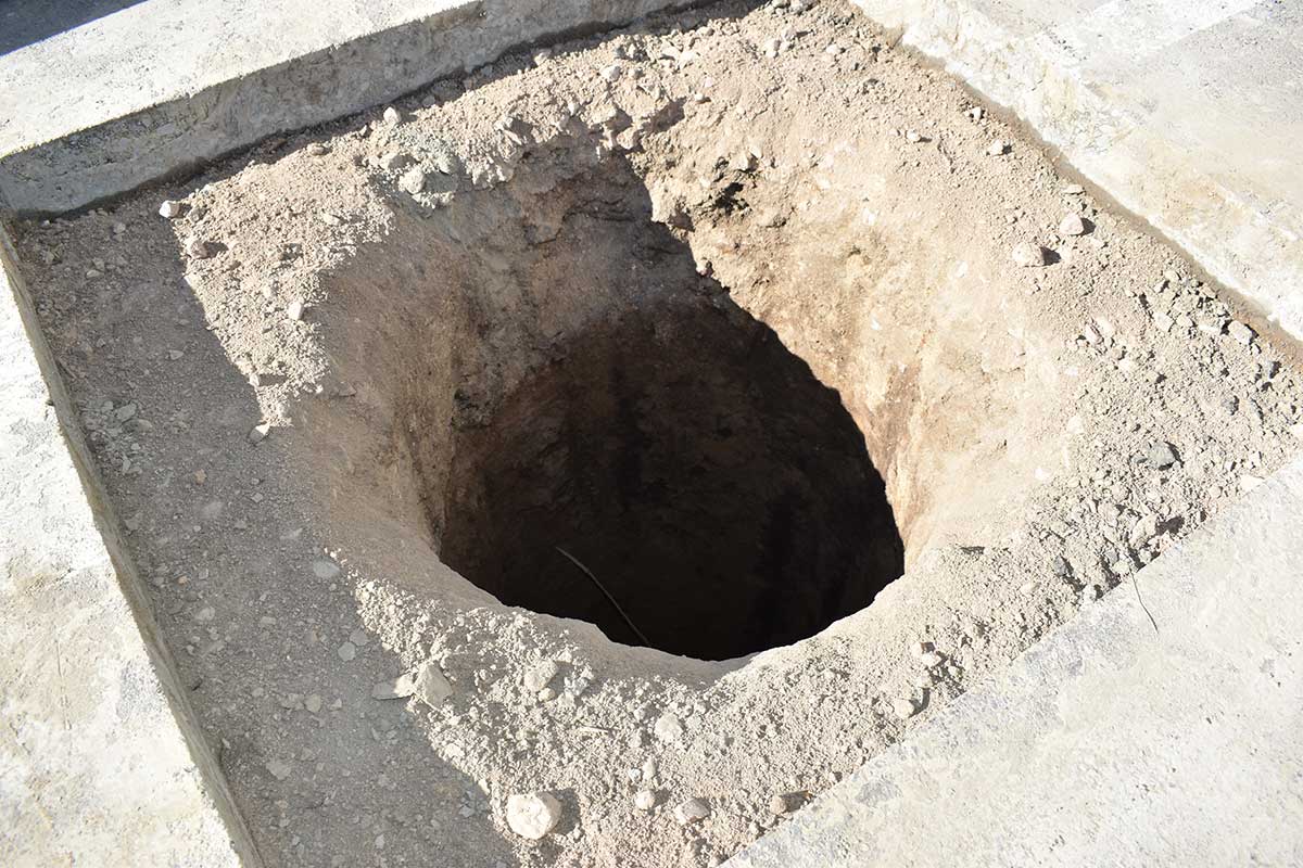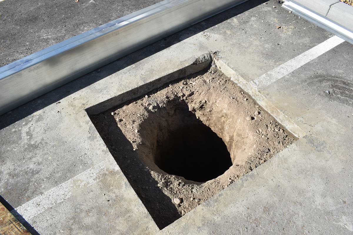 • Caisson hole.  This size is roughly 16″ x 16″ x 2.5′ to 3′ deep.  I took this pic, but didn’t measure.  This is for that same 4-space unit as above.