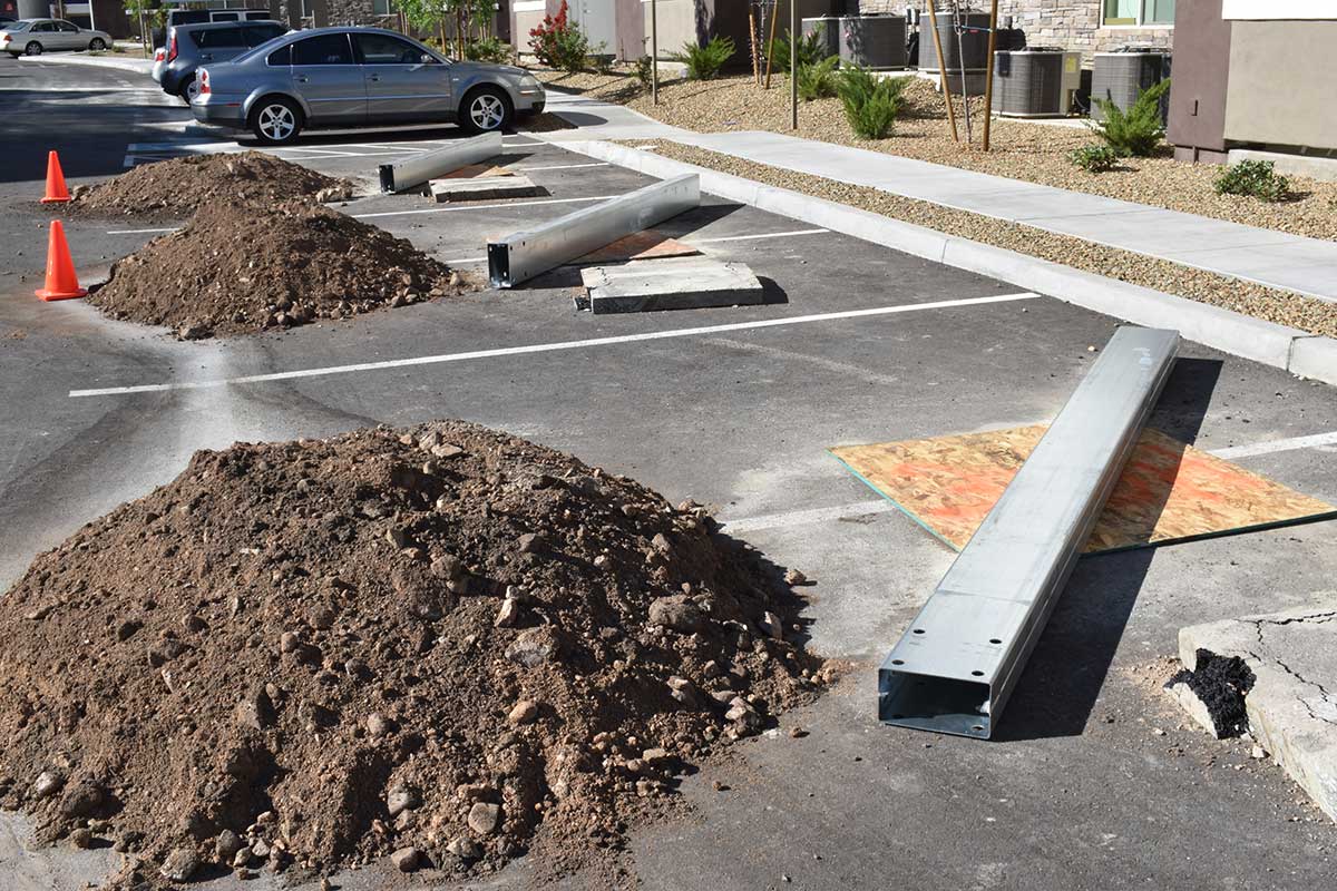 If you are considering adding covered parking to your existing apartment, office, industrial, or even private property, now is the time.  It’s a proven fact that offering covered parking increases rental retention rates and increases your ROI.  Covered parking is affordable, and easy to install on your property.  Yes – easy to install. Installation of a cantilever system is not much harder than building a fence.  See below for an overview on how easy installation of a cantilever carport system is.