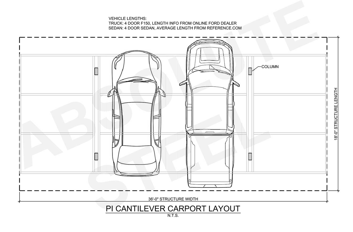 That’s why Absolute Steel developed the Pi-Cantilever System—named for its resemblance to the mathematical π symbol. This innovative configuration has been successfully engineered, manufactured, and installed across northern U.S. states where snow loads range from 26 PSF to more than 45 PSF.
